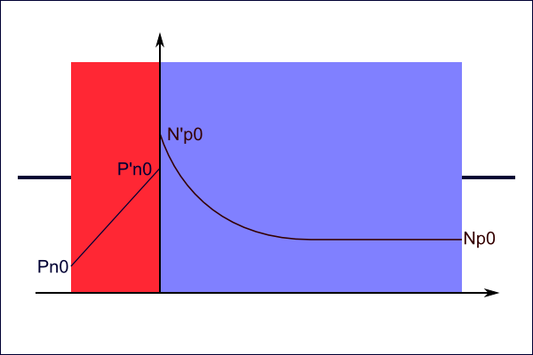 Graphs of minority carrier concentration and energy level diagrams could be included to illustrate different properties, such as effects of doping and recombination. For example, figure 8 below shows the graph of minority carrier concentration, and figure 9 illustrates the energy level diagram.